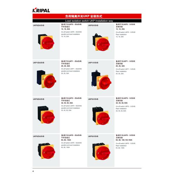 The load isolation switch UKP can be used as an overhaul switch or a master switch with a shell to connect various electrical loads. The opening position can be equipped with multiple padlocks. To ensure personal safety, the opening position should be clear and cannot be automatically reset.